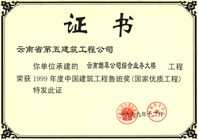 機(jī)場(chǎng)魯班獎(jiǎng)狀